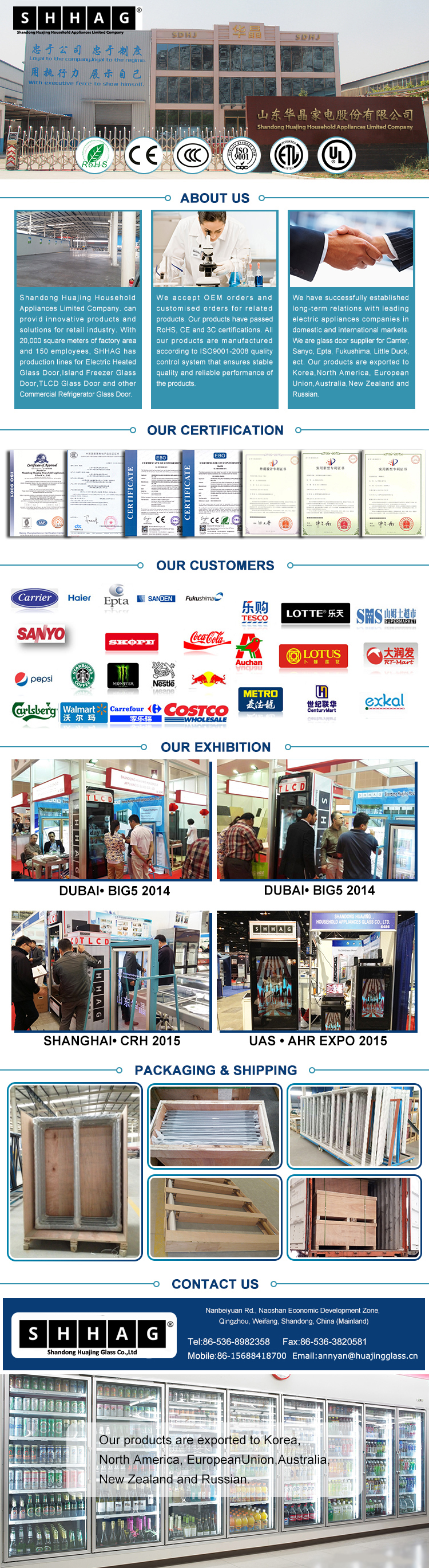 Shandong Huajing Glass Co.、Ltdは、最新のトレンドに近づき、スーパーマーケットで使用される業務用冷蔵庫ディスプレイガラスドアおよび棚を市場で競争力のある製品にしました。業界のトレンドをリードし、顧客に利益をもたらすことが期待されています。スーパーマーケットで使用される業務用冷蔵庫のディスプレイガラスのドアと棚科学的かつ高度な生産基準に従って、スーパーマーケットで使用される業務用冷蔵庫のディスプレイガラスのドアと棚の性能を優れたものにすることに成功しました。何度もテストを重ねた結果、リーチインガラスドア/フリーザーガラスドア/チラーガラスドア/冷蔵庫ガラスドアなどが優れていることが証明されました。発売前に、いくつかの国際および国内当局の認証に合格しています。