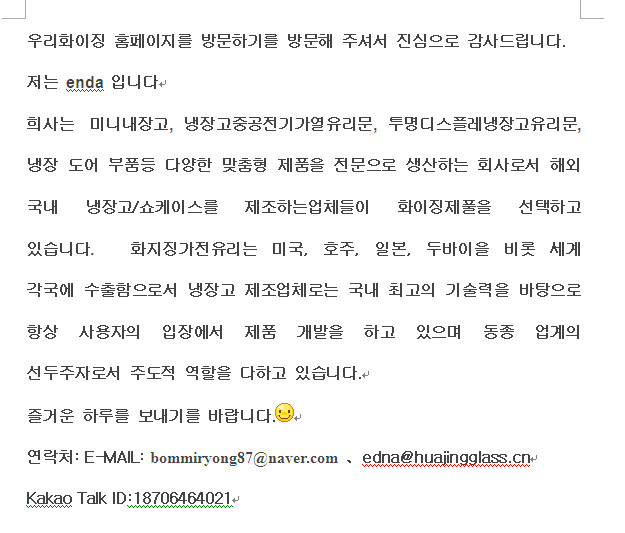 Shandong Huajing Household Glass Co.、Ltd。 に位置しています 濰坊、中国。 我々は プロフェッショナル 冷蔵庫の引き戸の製造・販売を行う企業。 私たちはできる 供給 幅 絶えず変化する市場の需要を満たすための製品の範囲。 カスタマイズされた注文は大歓迎です。 私たちの 製品は多くの国や地域、特にヨーロッパに輸出されています。 アメリカ、アフリカ、アジア。