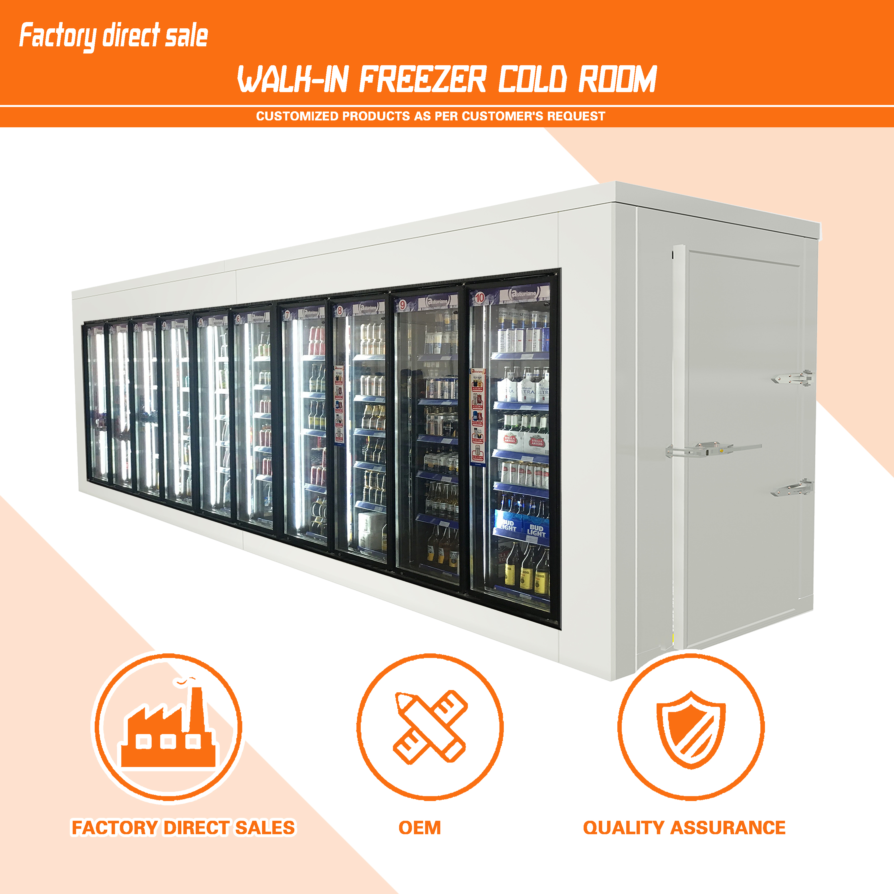 ウォークインクーラーガラスドアディスプレイのカスタマイズ棚付き冷蔵室ガラスドア
