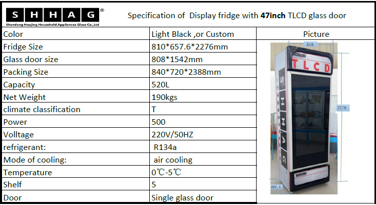 4. The pintu kaca dengan kawasan visual TLCD adalah lebih, mempunyai transmisi cahaya yang baik, yang barangan dalaman boleh dilihat dengan jelas apabila video dimainkan!