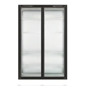 Refrigerators with heated glass doors for food display.