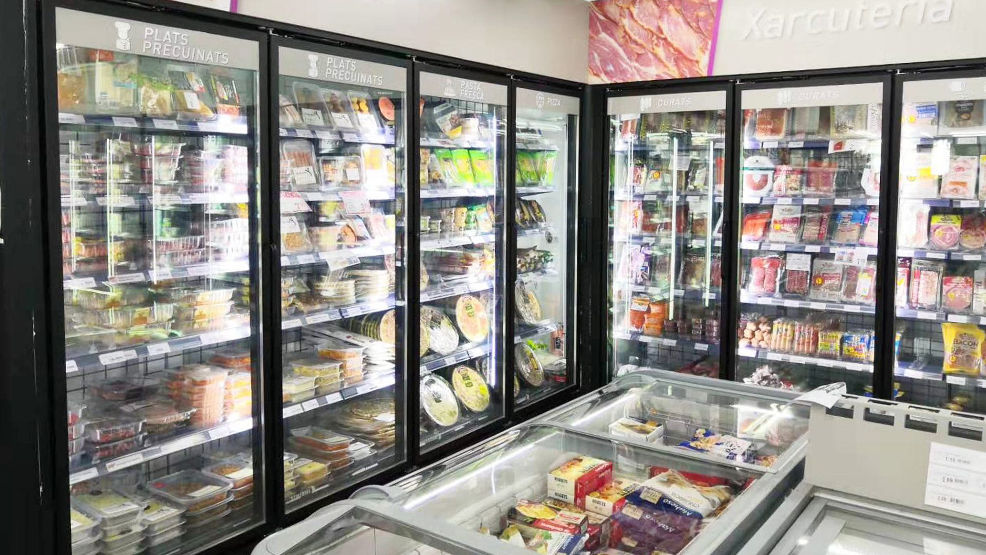 The doors, supplied by SHHAG, were attached to fresh, liquid dairy showcase doors case in Spain.