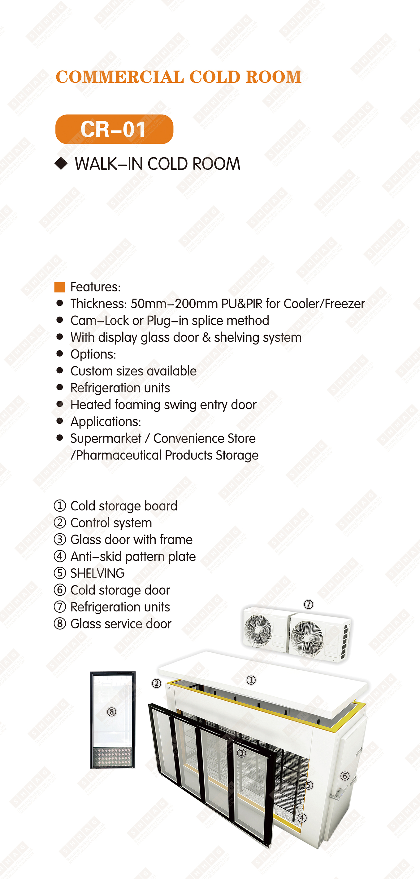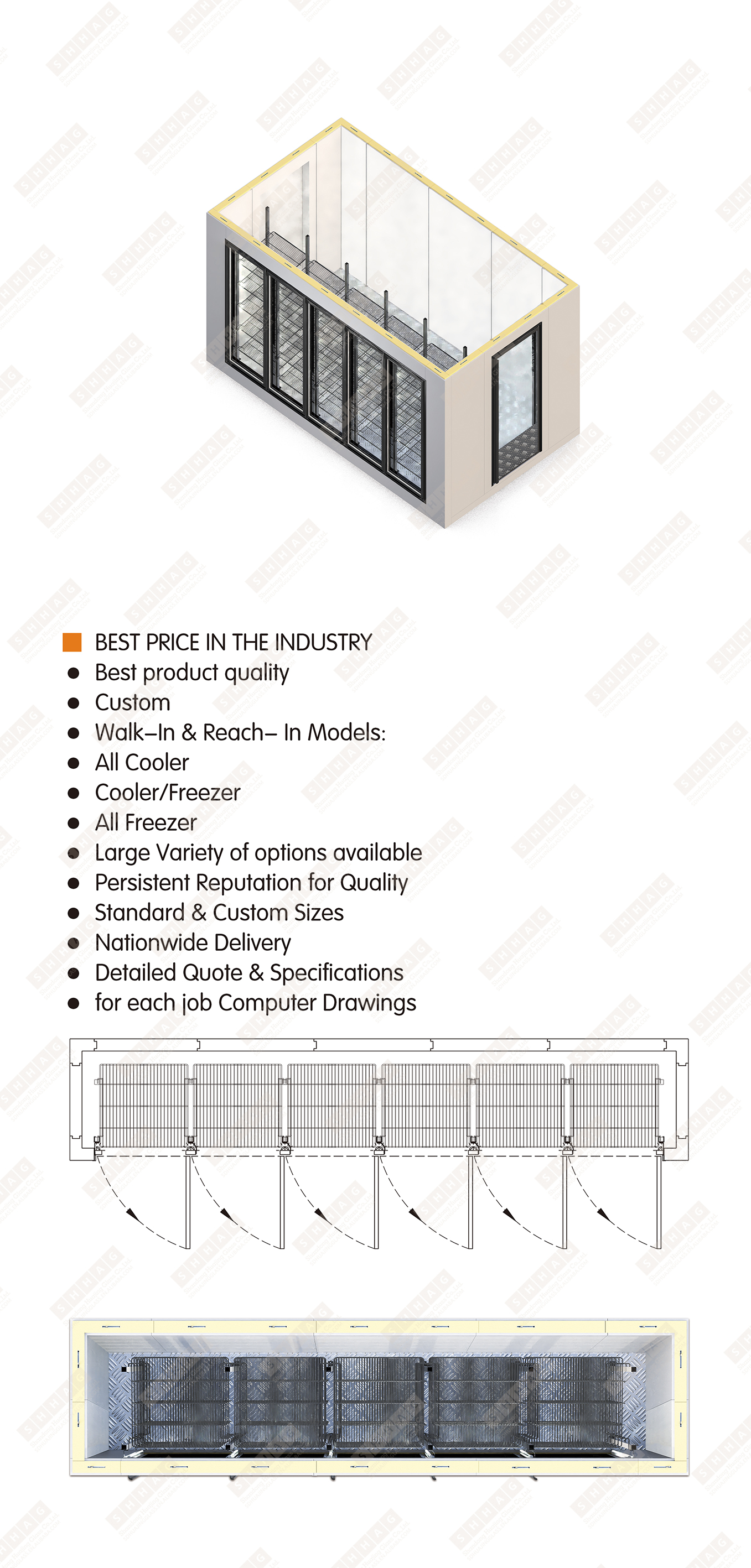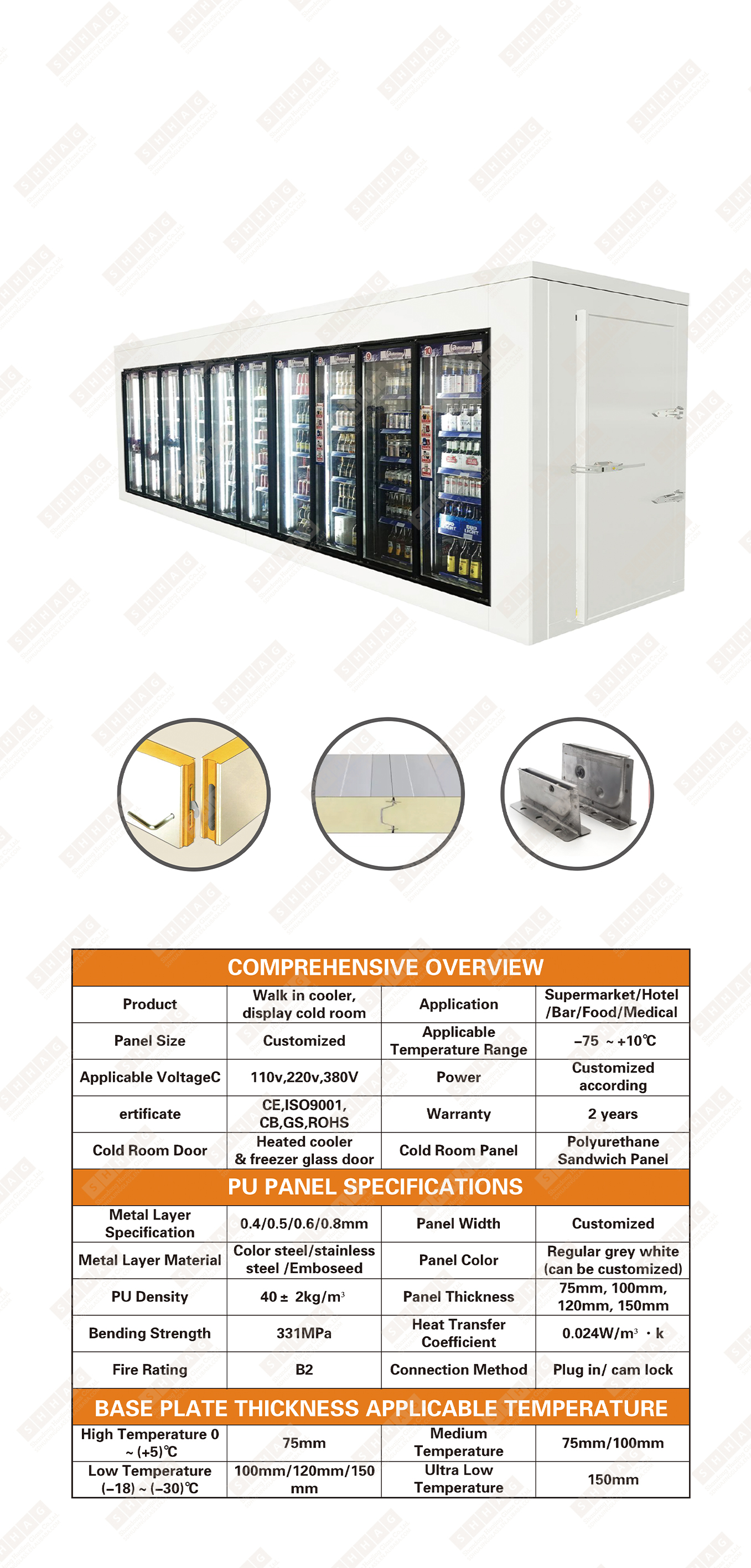 Мы предоставляем клиентам готовые решения для холодильных и морозильных камер, холодильные камеры со стеклянными дверями широко используются в супермаркетах, продуктовых магазинах, магазинах на заправочных станциях для хранения пива, молока и других продуктов, которые вы хотите. Наши холодильные камеры доступны в стандартных отраслевых размерах, а также в индивидуальном дизайне, подходящем для ваших конкретных потребностей.